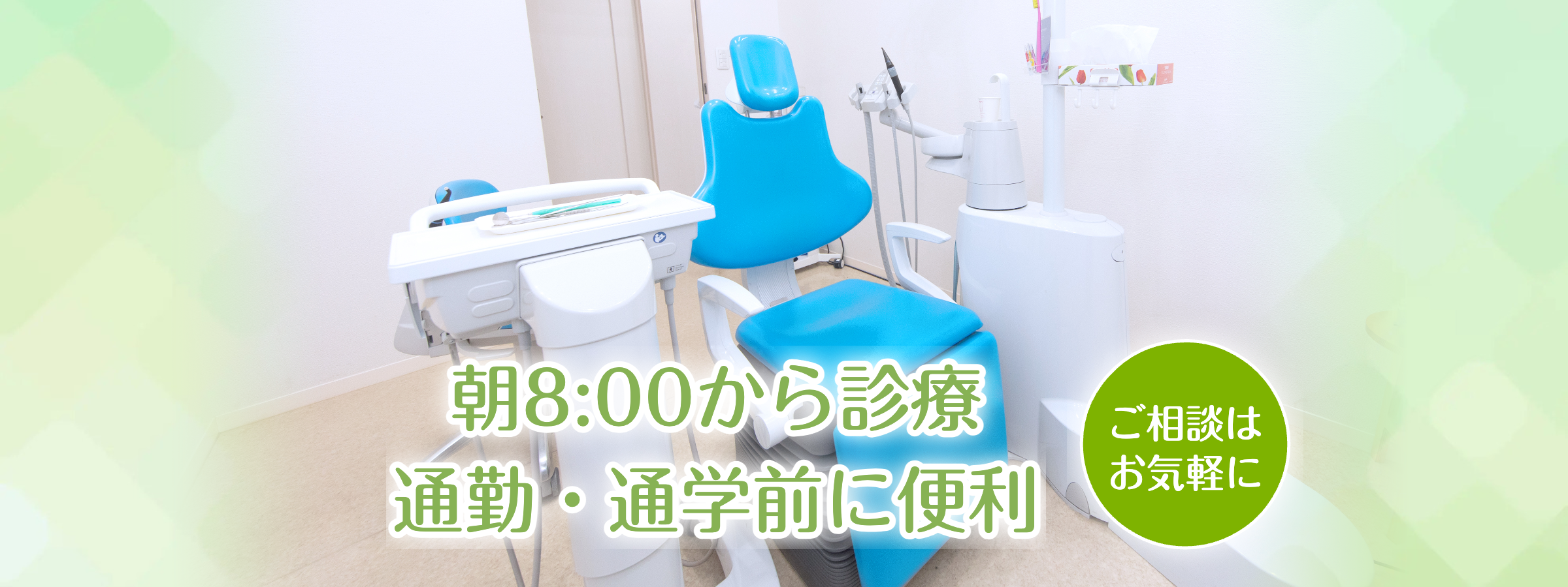 月曜〜水曜および金曜・土曜は8:00から皆さまをお迎えしており、お仕事や学校へ行く前の時間を有効に活用して通院できるのが特徴です。