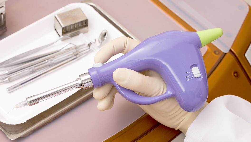 麻酔液を注入する際は、一定の速度を保つと痛みを感じにくくなります。当院では電動注射器を使用し、コンピュータで注入速度を制御。体への刺激を減らすことで、痛みを抑えています。