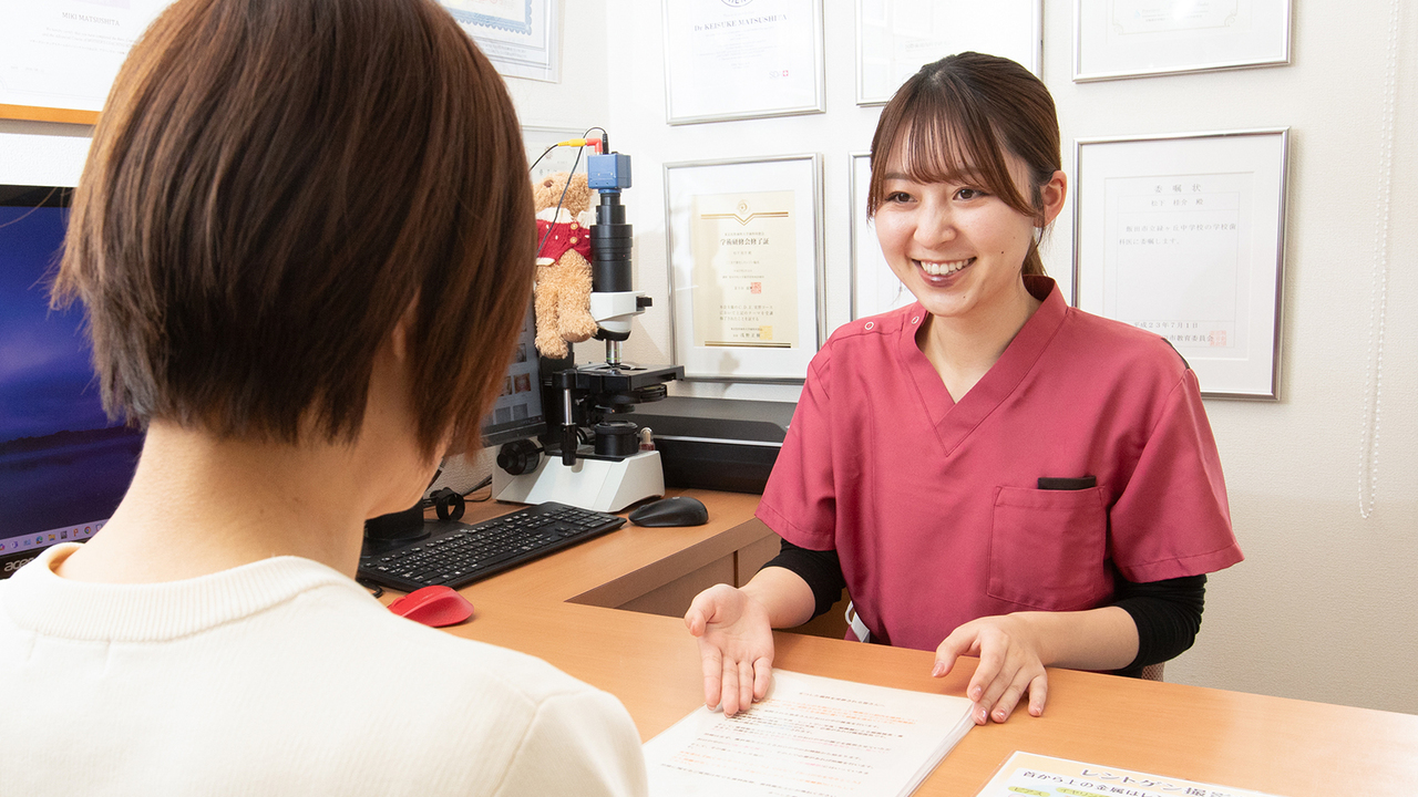 患者さまにしっかりとご説明することを心がけていますので、不明点などございましたら、遠慮なくご質問ください。
